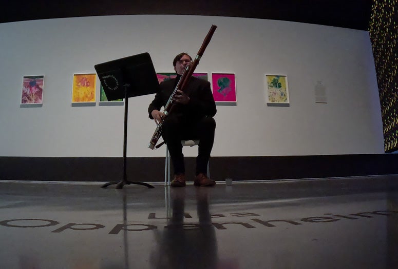 Harpist Sophie Kim performed Victor Tswei’s “...al dopopioggia…,” while Austin Struble took the bassoon through William Jae’s “Afterthought,” and Tswei and Gavin Sol Goodrich (voice and piano) brought Angela Ortiz’s “Dido Studies” to life in the Moody’s central and Brown Foundation galleries.